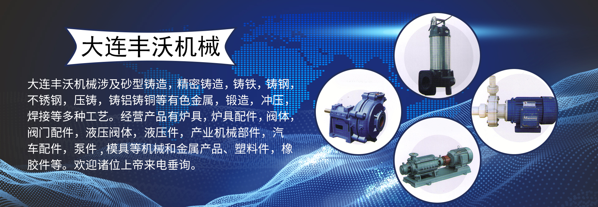 大連豐沃機(jī)械有限公司是一家專(zhuān)業(yè)從事進(jìn)出口業(yè)務(wù)的國(guó)際貿(mào)易公司。公司下有機(jī)械加工實(shí)體并有多家長(zhǎng)期戰(zhàn)略合作企業(yè)。公司從事進(jìn)出口業(yè)務(wù)十余年,主要面向日本,兼顧歐美及東盟。以機(jī)械制造及金屬制品為主。涉及砂型鑄造,精密鑄造,鑄鐵,鑄鋼,不銹鋼,壓鑄,鑄鋁鑄銅等有色金屬,鍛造,沖壓,焊接等多種工藝。經(jīng)營(yíng)產(chǎn)品有爐具,爐具配件,閥體,閥門(mén)配件,液壓閥體,液壓件,產(chǎn)業(yè)機(jī)械部件,汽車(chē)配件,泵件,模具等機(jī)械和金屬產(chǎn)品、塑料件,橡膠件等。歡迎諸位上帝來(lái)電垂詢(xún)。